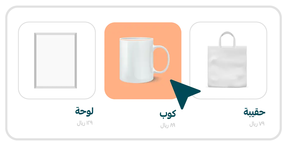 يمكنك بيع مجموعة متنوعة من المنتجات المتخصصة مثل الأكواب, الدفاتر, اللوحات الجدارية, شنط قماشية, الملصقات